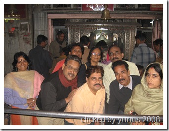 रामदेवरा मंदिर में विविध भारती की टोली: बांये से शकुंतला पंडित, राकेश जोशी दिलीप कुलकर्णी, खांडेकर और शॉल ओढ़े रेडियोसखी ममता सिंह । बिल्कुल पीछे अशोक सोनावणे, कमलेश पाठक और कमल शर्मा