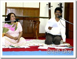 इस तरह सोमवार का दिन काफी यादगार रहा । बैरागी जी की मज़ाकिया चुटकियां, निदा फ़ाज़ली का संदर्भों के सहारे बातें करना और व्यंग्य बाण चलाना और कुंअर बेचैन का ख़ामोशी से काम लेना और राहत इंदौरी का अंडरप्ले करना । सब कुछ मज़ेदार रहा । और हां चलते चलते ये भी बता दिया जाए कि ये तमाम चित्र विविध भारती के सहायक केंद्र निदेशक महेंद्र मोदी ने खींची हैं ।