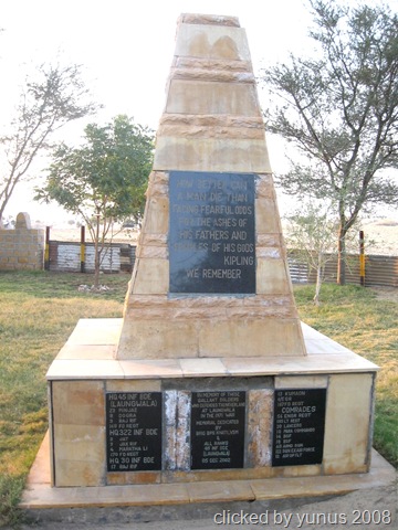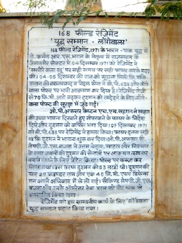 लोंगेवाल-युद्ध का स्मारक, जिस पर इस लड़ाई में हिस्सा लेने वाले सभी सैनिकों के नाम लिखे हैं । और रूडयार्ड किपलिंग की ये उक्ति भी लिखी है: