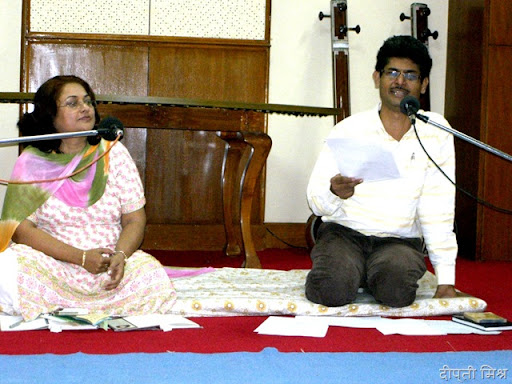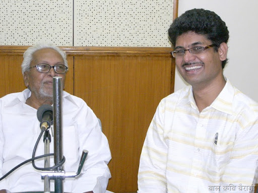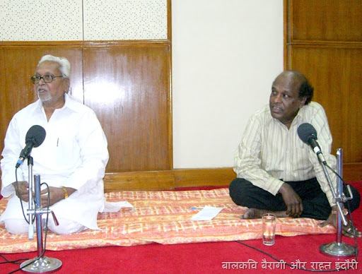 इस तरह सोमवार का दिन काफी यादगार रहा । बैरागी जी की मज़ाकिया चुटकियां, निदा फ़ाज़ली का संदर्भों के सहारे बातें करना और व्यंग्य बाण चलाना और कुंअर बेचैन का ख़ामोशी से काम लेना और राहत इंदौरी का अंडरप्ले करना । सब कुछ मज़ेदार रहा । और हां चलते चलते ये भी बता दिया जाए कि ये तमाम चित्र विविध भारती के सहायक केंद्र निदेशक महेंद्र मोदी ने खींची हैं ।